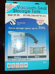 Just pack, vac, and stack. Clear clutter and save four-times more space with this set of two jumbo-size storage totes. These durable and reusable containers are perfect for stowing seasonal clothing, linens, bedding--anything you want to organize and protect.